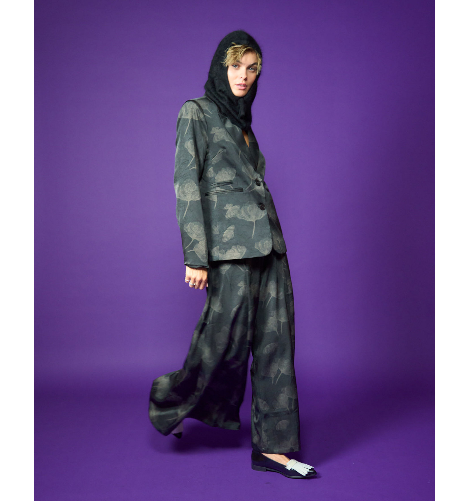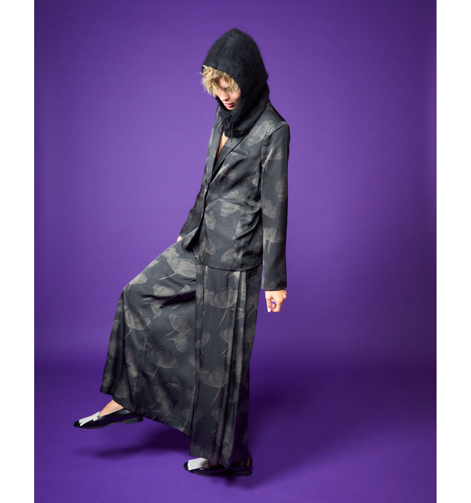 Giacca stampa glitter in raso tecnico Abbinabile a gonna pantalone Stem skirt