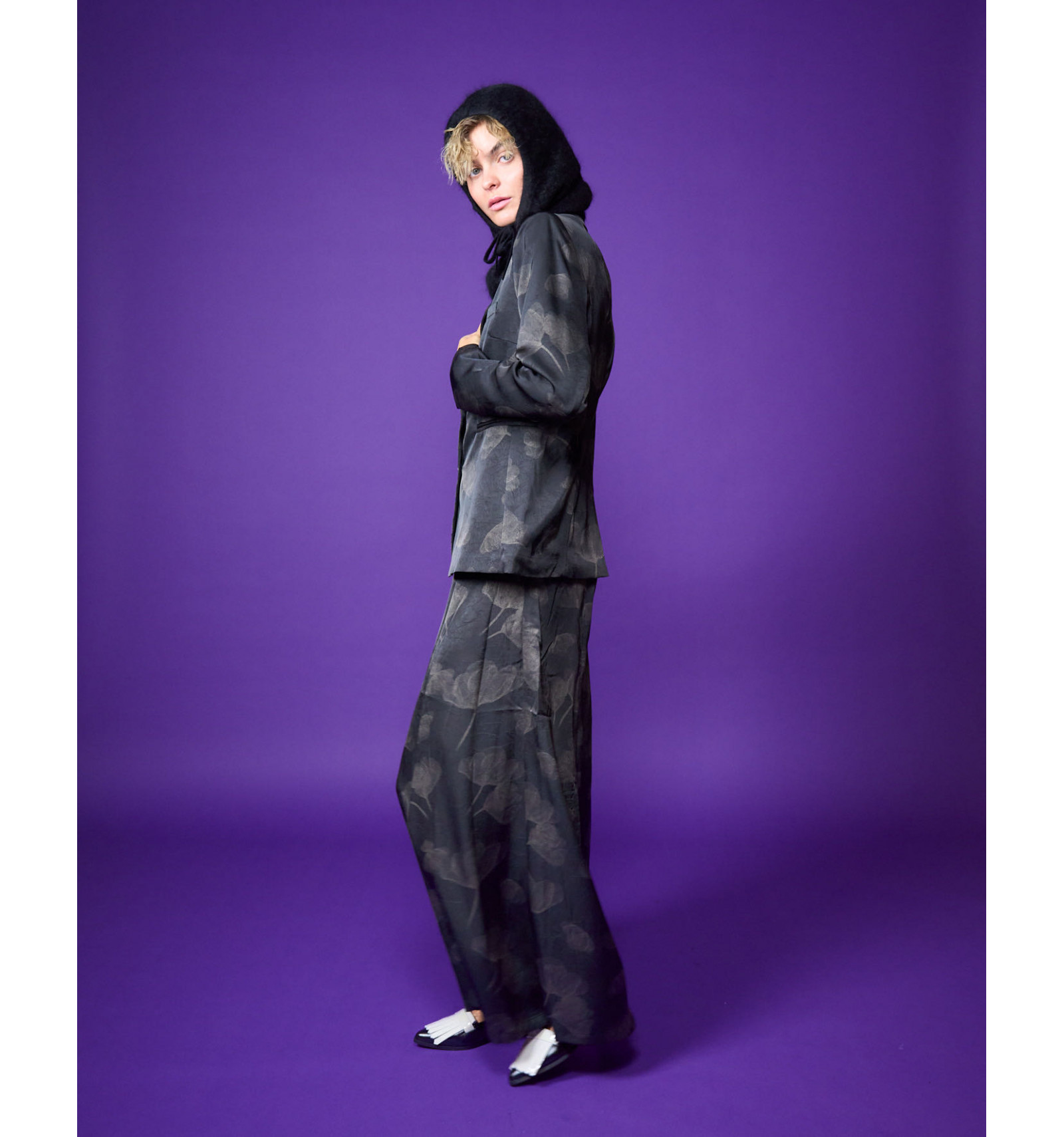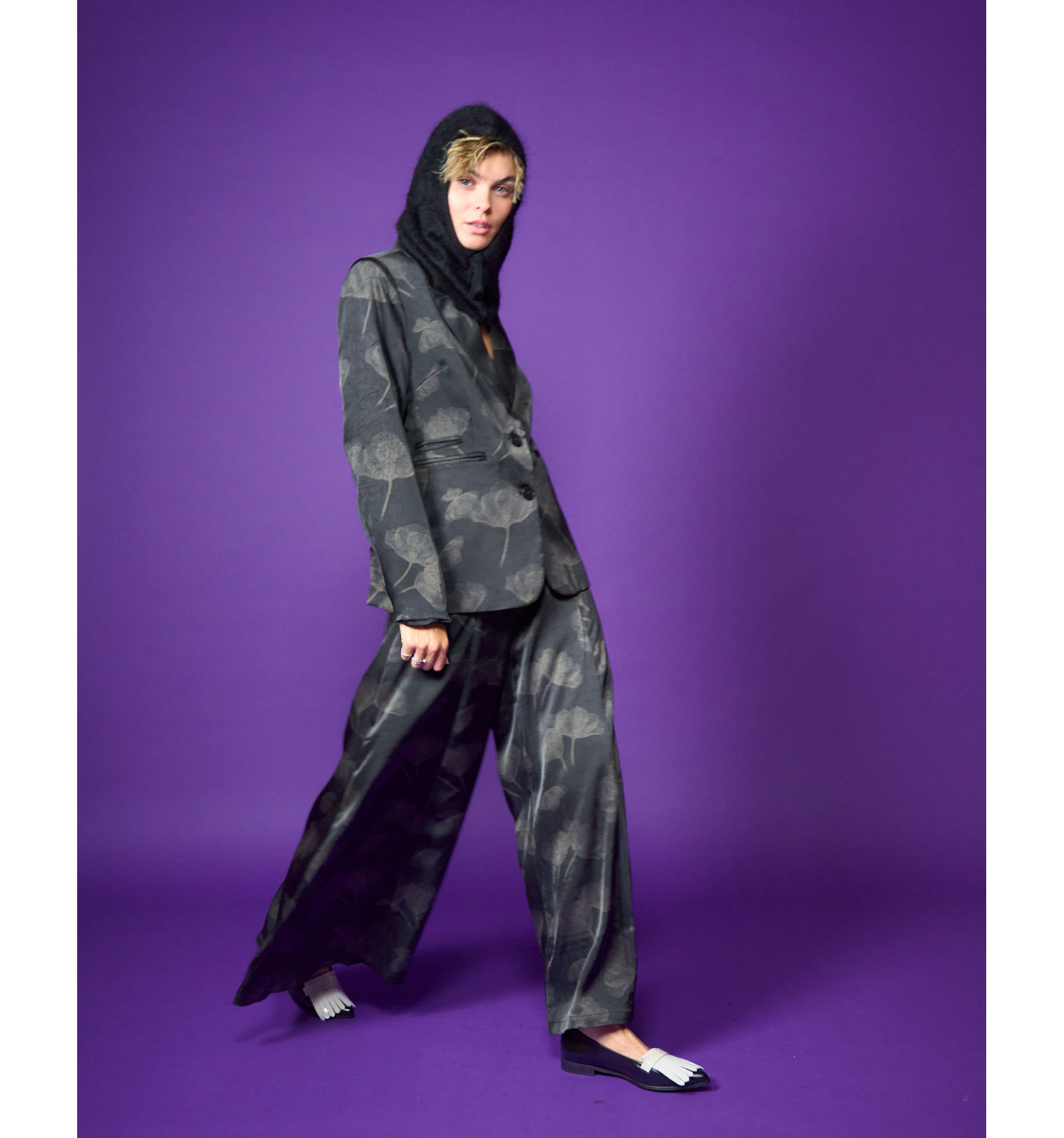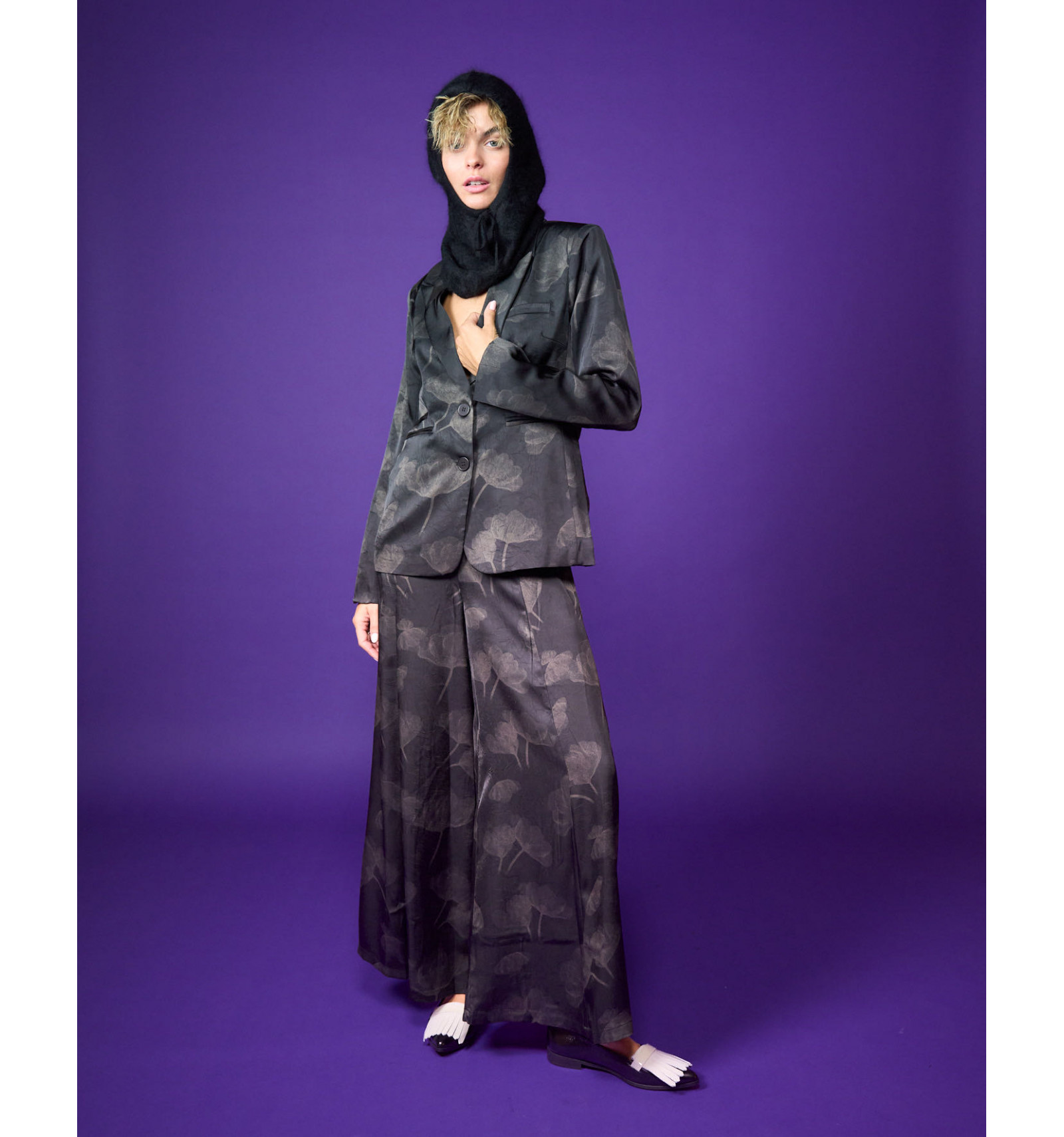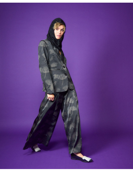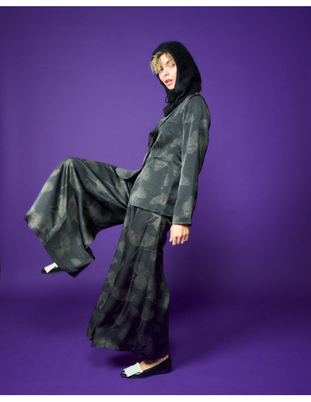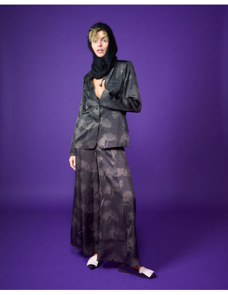 Gonna pantalone tessuto glitter stampato abbinabile a giacca Stem