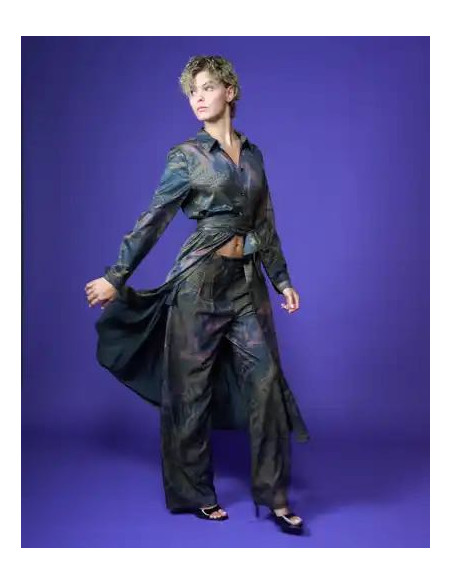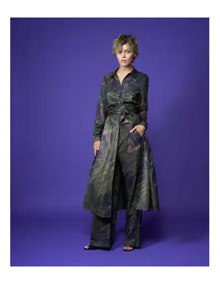 Pantalone con pences piatte morbido in gamba fantasia toni verdi marrone rosa antico