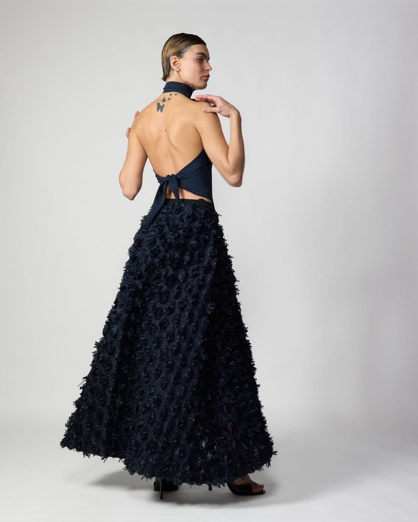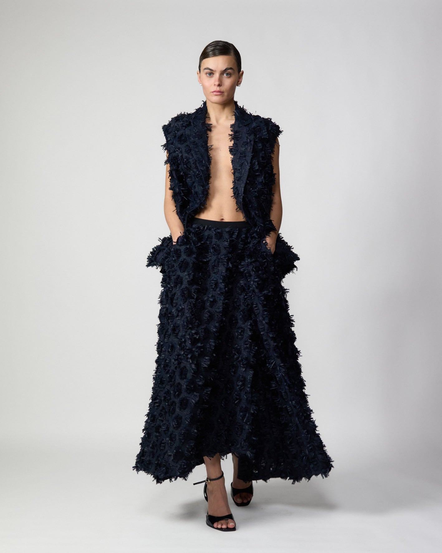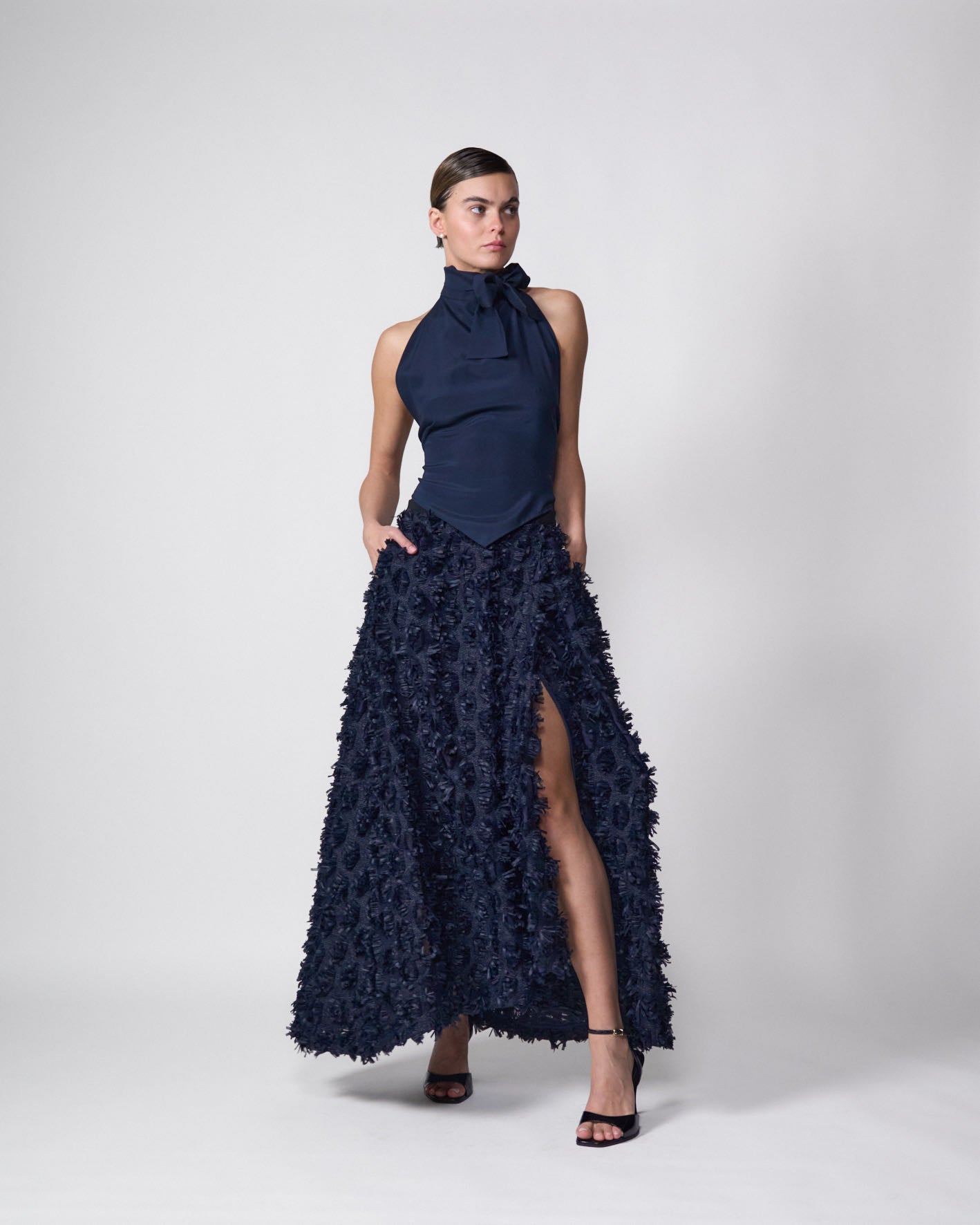 Gonna con spacco tessuto ciuffi in misto cotone viscosa